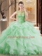 Dazzling Scoop Apple Green Sleeveless Beading and Ruffles Lace Up Sweet 16 Dress