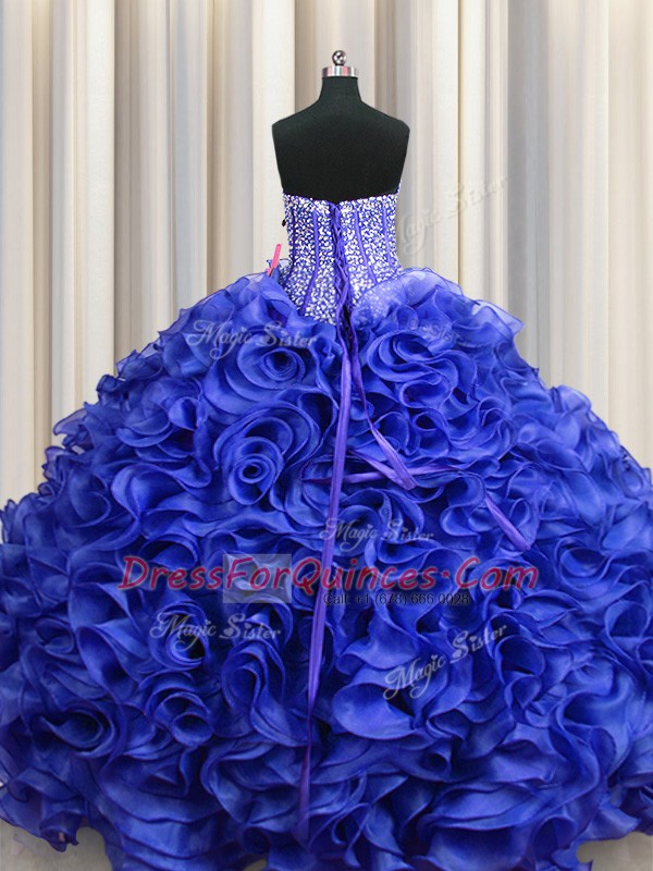 Decent Visible Boning Floor Length Lace Up Sweet 16 Dress Royal Blue for Military Ball and Sweet 16 and Quinceanera with Beading and Ruffles