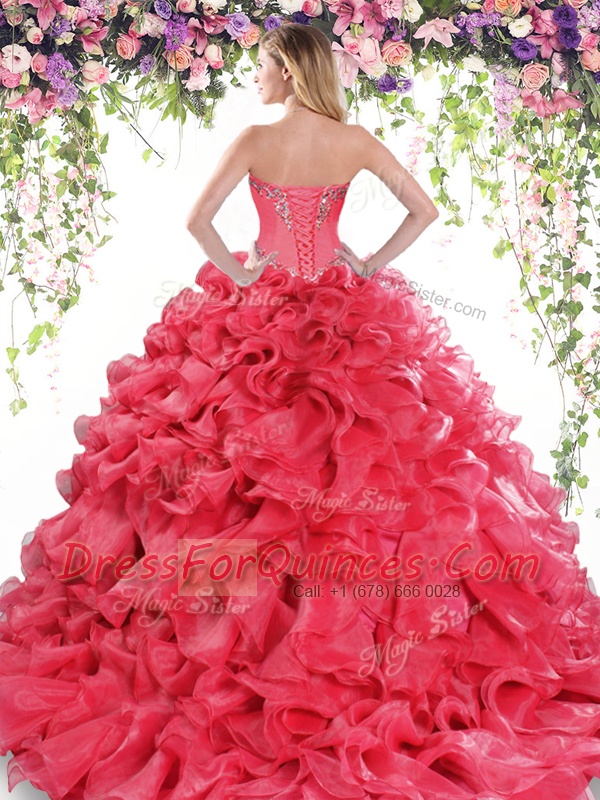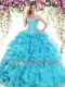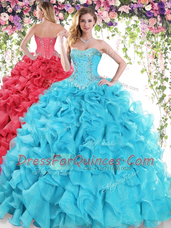 Delicate Baby Blue Sweet 16 Dresses Military Ball and Sweet 16 and Quinceanera and For with Beading and Ruffles Sweetheart Sleeveless Sweep Train Lace Up