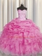 Exceptional Sweetheart Sleeveless Organza Ball Gown Prom Dress Beading and Ruffles Lace Up