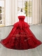 Fancy Wine Red Quinceanera Gown Tulle Brush Train Sleeveless Lace and Ruffles