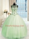 Fashion Apple Green Ball Gowns Tulle Scoop Sleeveless Beading Floor Length Lace Up Sweet 16 Dresses