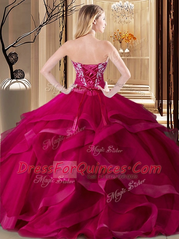 Fitting Sleeveless Embroidery and Ruffles Lace Up Quinceanera Dresses