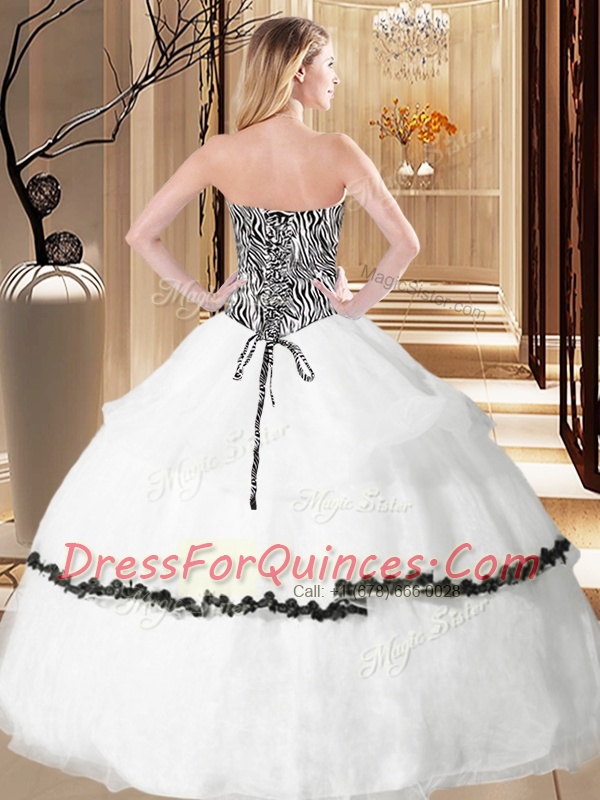 Flare Ruffled Floor Length Ball Gowns Sleeveless White 15th Birthday Dress Lace Up