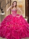 Flirting Floor Length Hot Pink Ball Gown Prom Dress Sweetheart Sleeveless Lace Up