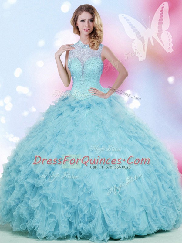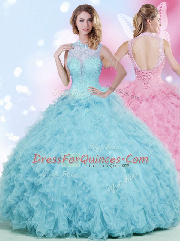 Floor Length Ball Gowns Sleeveless Baby Blue Quinceanera Gowns Lace Up