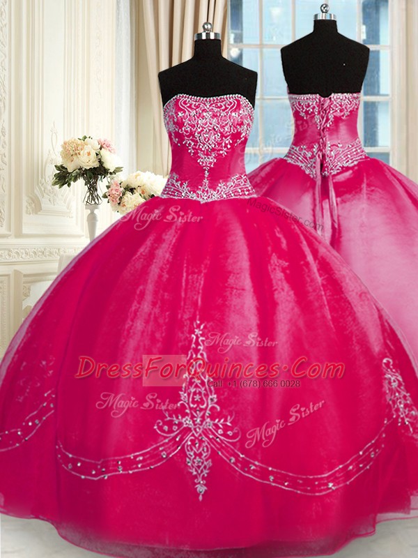 Floor Length Coral Red 15th Birthday Dress Strapless Sleeveless Lace Up