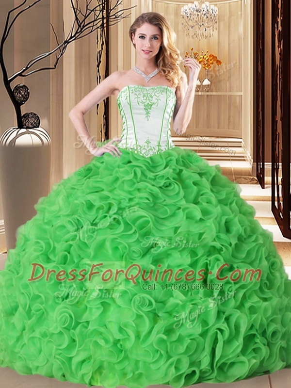 Floor Length Lace Up Quinceanera Dress for Military Ball and Sweet 16 and Quinceanera with Embroidery and Ruffles