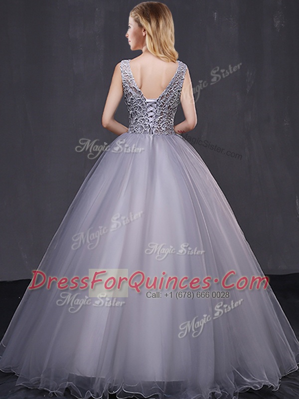 Hot Selling Sleeveless Lace Up Floor Length Appliques 15 Quinceanera Dress