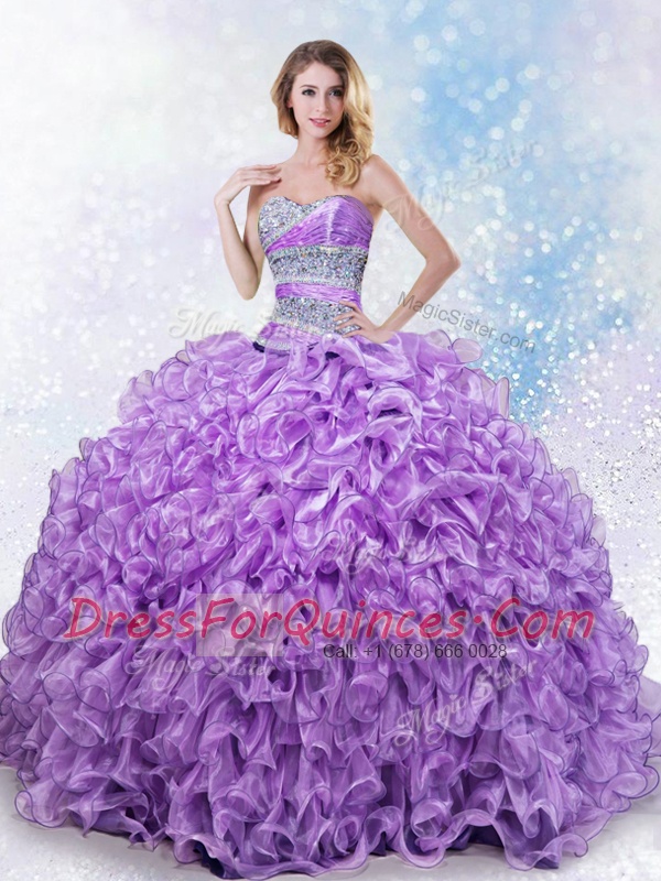 Lavender Sleeveless Organza Lace Up Quinceanera Dress for Military Ball and Sweet 16 and Quinceanera