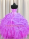 Lilac Ball Gowns Organza Sweetheart Sleeveless Beading and Ruffles and Pick Ups Floor Length Lace Up Quinceanera Gown