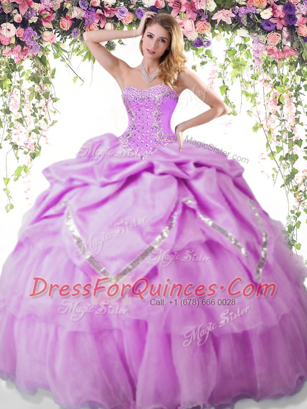 Lilac Sleeveless Beading and Pick Ups Floor Length Quinceanera Dresses