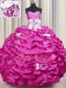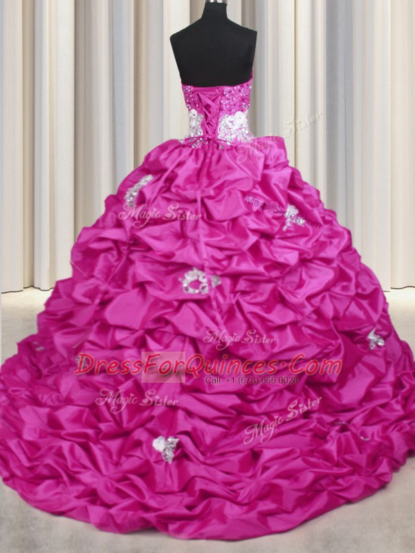 Modern Fuchsia Lace Up Sweet 16 Quinceanera Dress Appliques and Sequins and Pick Ups Sleeveless With Train Sweep Train