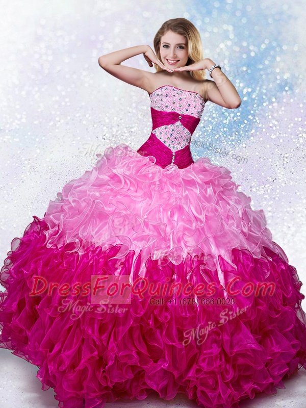 Multi-color Ball Gowns Beading Ball Gown Prom Dress Lace Up Organza Sleeveless Floor Length