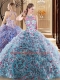 Multi-color Criss Cross Sweet 16 Dress Ruffles and Pattern Sleeveless Sweep Train