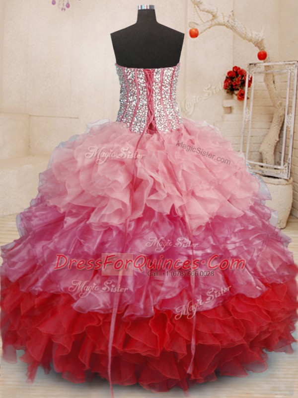 Multi-color Sweetheart Neckline Beading and Ruffles Quinceanera Gown Sleeveless Lace Up