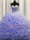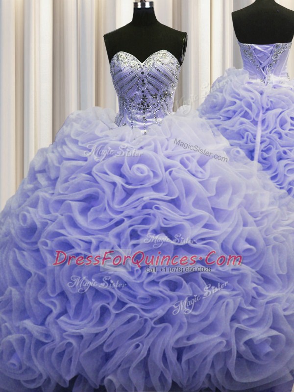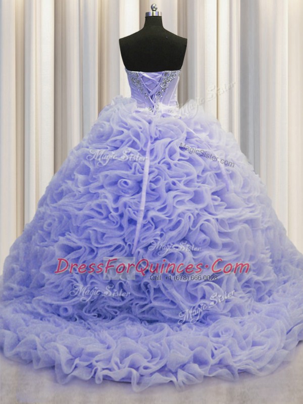 Noble Lavender Fabric With Rolling Flowers Lace Up 15th Birthday Dress Sleeveless Brush Train Beading and Pick Ups