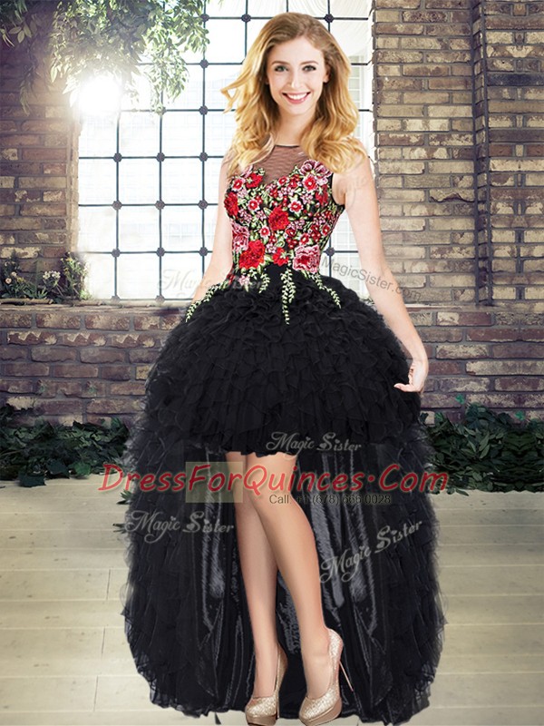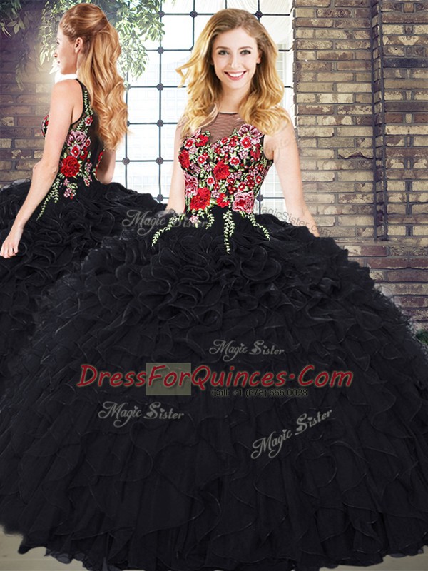 Organza Sleeveless Floor Length Quinceanera Gowns and Embroidery and Ruffles