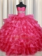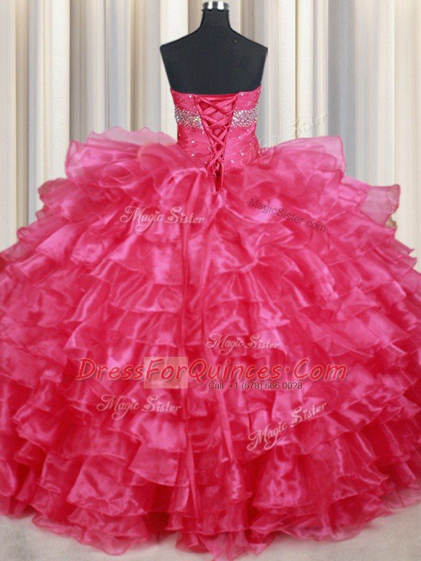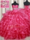 Organza Sweetheart Sleeveless Lace Up Ruffled Layers Sweet 16 Quinceanera Dress in Coral Red