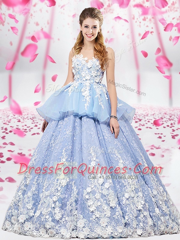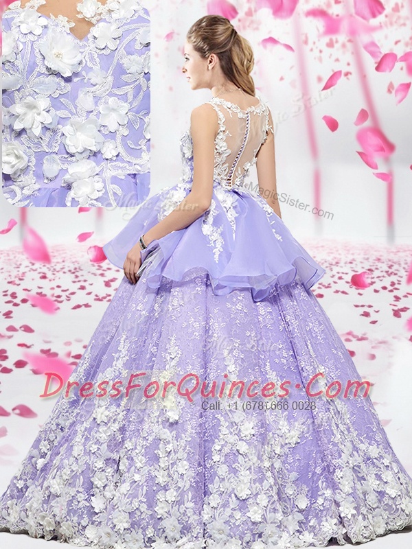 Scoop Lavender Sleeveless Organza and Tulle Lace Up Quince Ball Gowns for Military Ball and Sweet 16 and Quinceanera