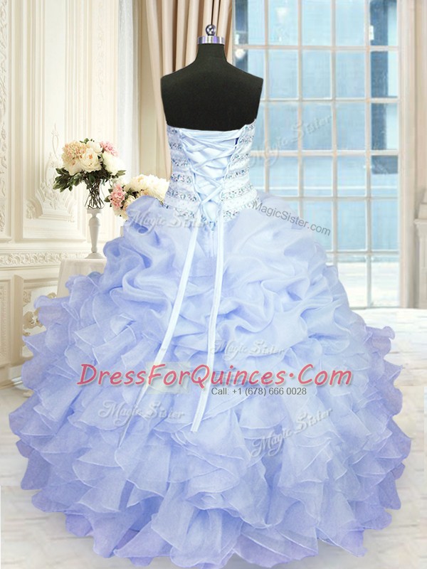 Sexy Lavender Lace Up Sweetheart Beading and Ruffles Quinceanera Gowns Organza Sleeveless