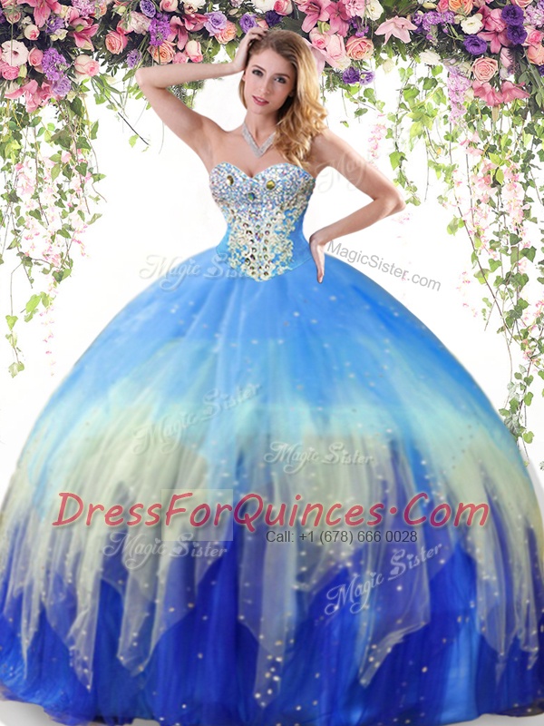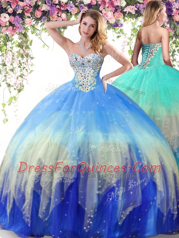 Sexy Multi-color Sleeveless Floor Length Beading Lace Up Ball Gown Prom Dress