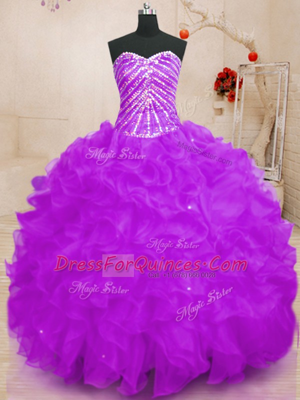Sexy Purple Sweetheart Lace Up Beading and Ruffles and Sequins Quinceanera Gowns Sleeveless