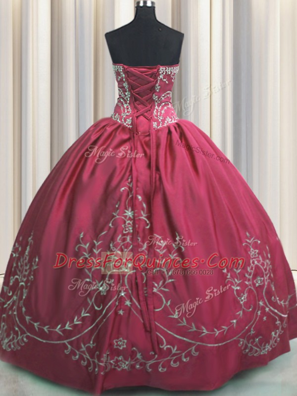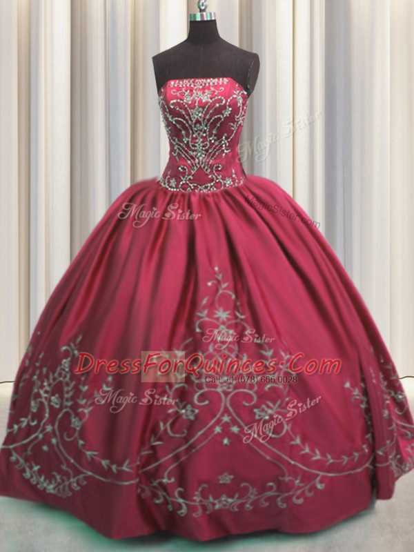 Simple Embroidery Floor Length Ball Gowns Sleeveless Coral Red Quinceanera Dresses Lace Up