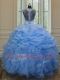 Simple Straps Sleeveless Sweet 16 Quinceanera Dress Floor Length Beading and Ruffles Blue Organza
