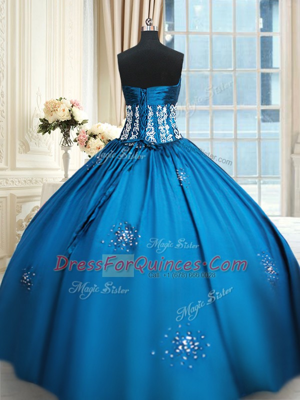 Simple Taffeta Strapless Sleeveless Lace Up Beading and Appliques and Ruching Vestidos de Quinceanera in Blue and Teal
