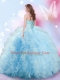 Sleeveless Floor Length Beading and Ruffles Lace Up Quince Ball Gowns with Baby Blue