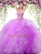Sleeveless Floor Length Beading and Ruffles Lace Up Quince Ball Gowns with Lilac