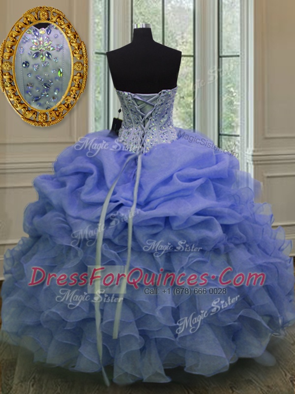 Sleeveless Lace Up Floor Length Beading and Pick Ups Quince Ball Gowns