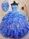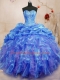 Sophisticated Blue Ball Gown Prom Dress Military Ball and Sweet 16 and Quinceanera and For with Beading and Ruffles Sweetheart Sleeveless Lace Up