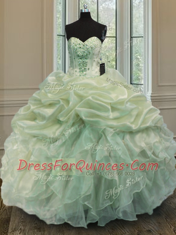 Stunning Green Sweetheart Lace Up Beading and Ruffles Sweet 16 Dresses Sleeveless