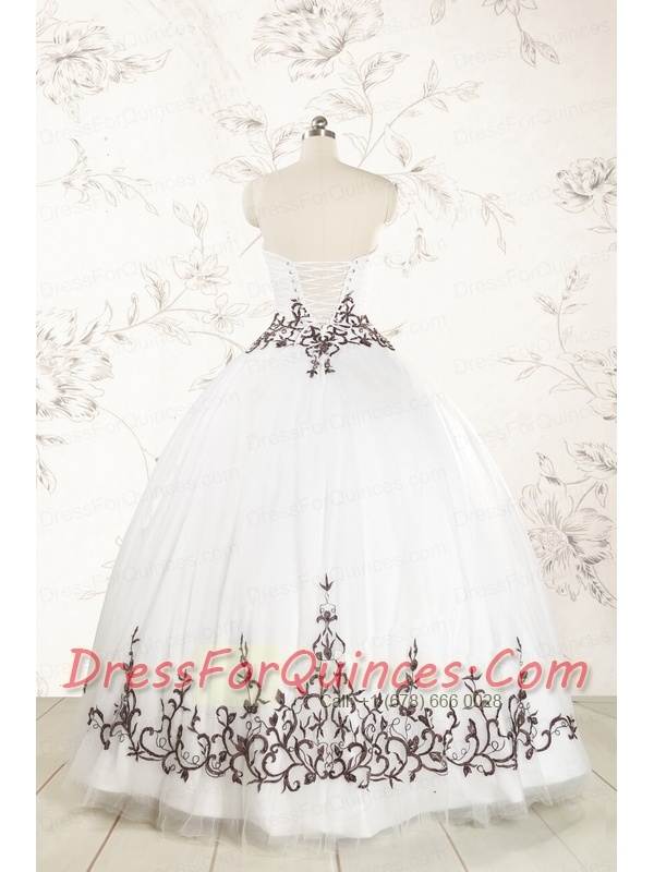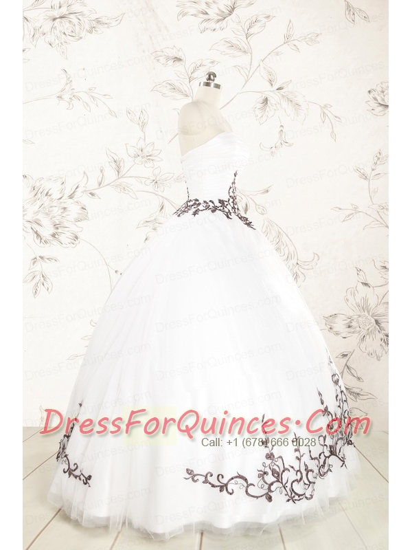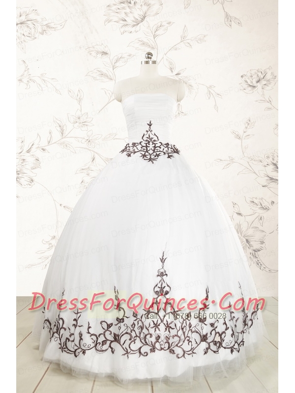 2015 Appliques Strapless Ball Gown White Tulle Quinceanera Dress