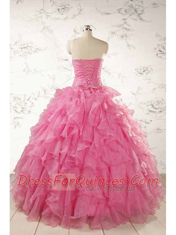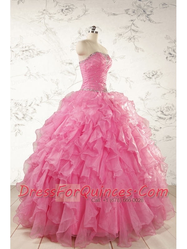 2015 Ball Gown Organza Quinceanera Dresses with Beading and Ruffles