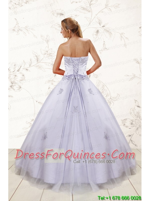 2015 Brand New Strapless Lavender Quinceanera Dresses with Appliques