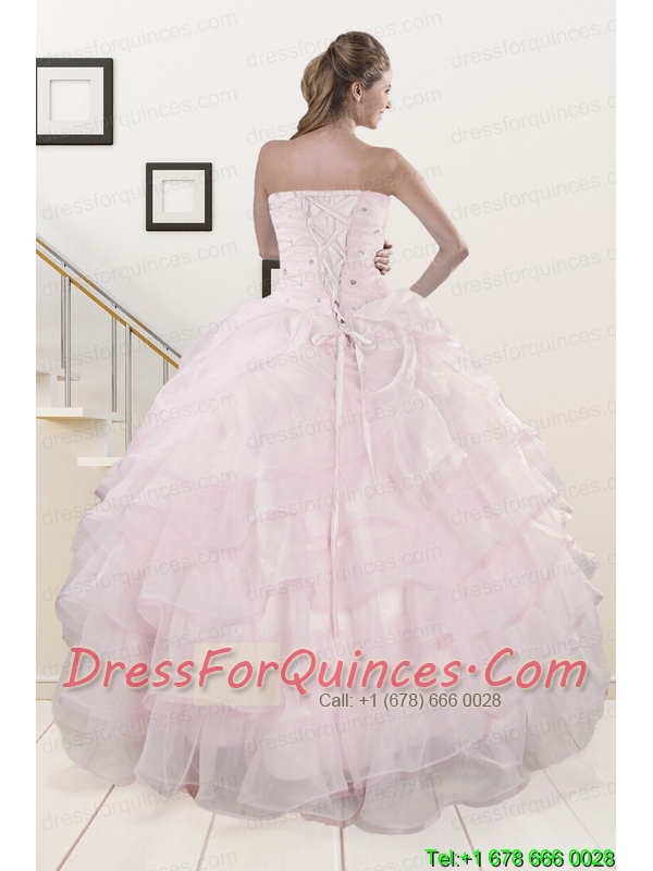 2015 Cute Baby Pink Quinceanera Dresses with Beading and Ruffles