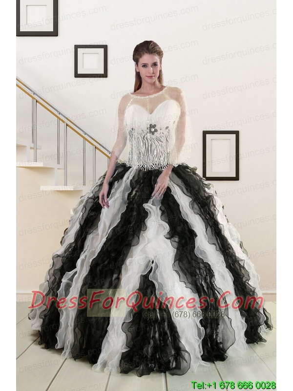 2015 Exclusive Black and White Quinceanera Dresses with Zebra and Ruffles