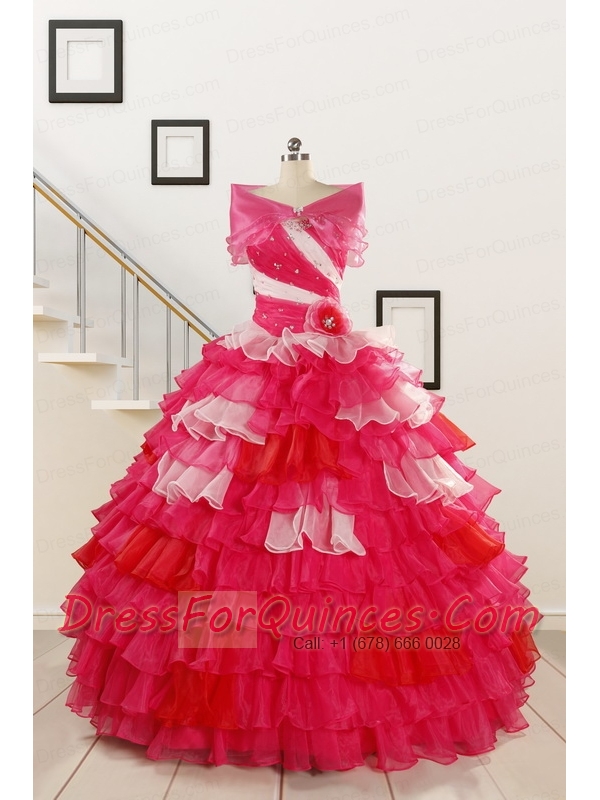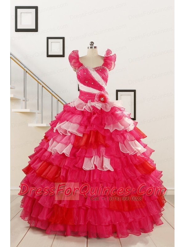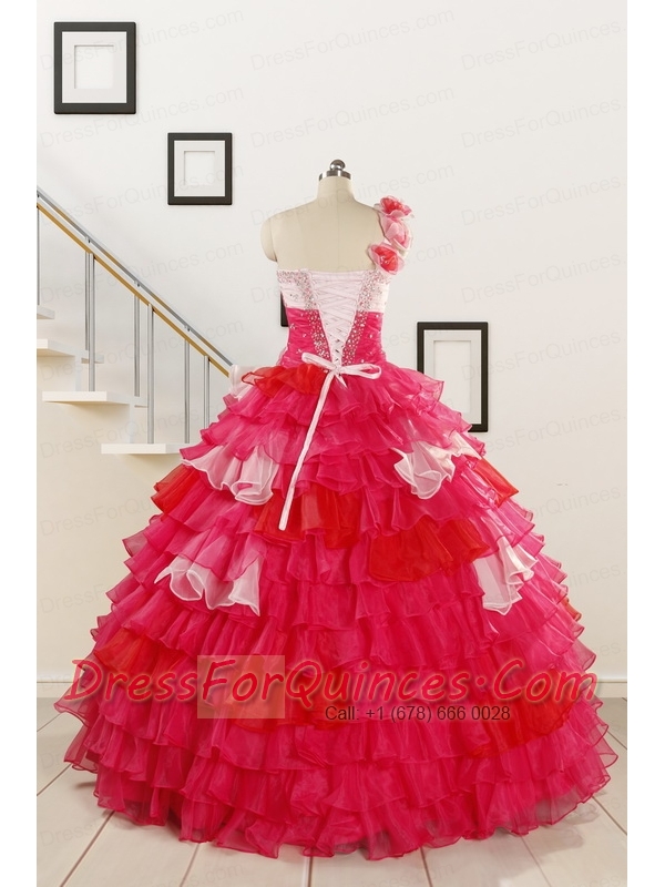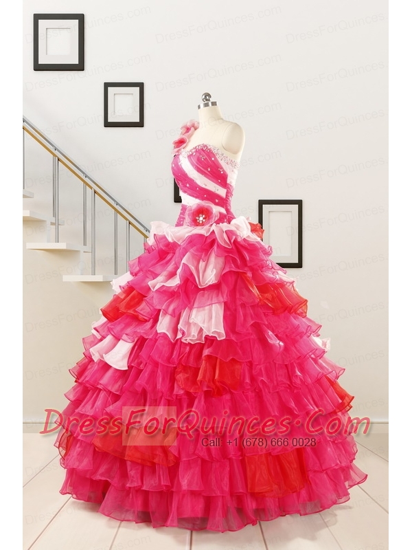2015 Multi Color Hand Made FlowerQuinceanera Dress with One Shoulder