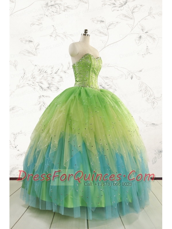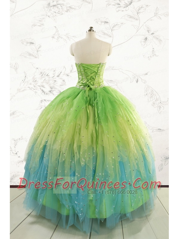 2015 New Style Beading and Ruffles Quinceanera Dresses in Multi-color