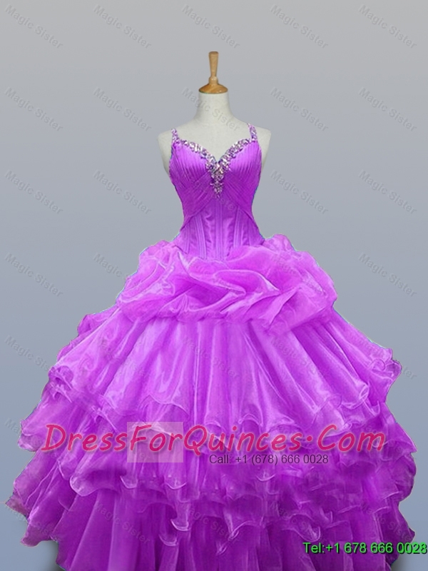 2015 Popular Straps Beaded Quinceanera Dresses with Ruffled Layers