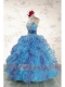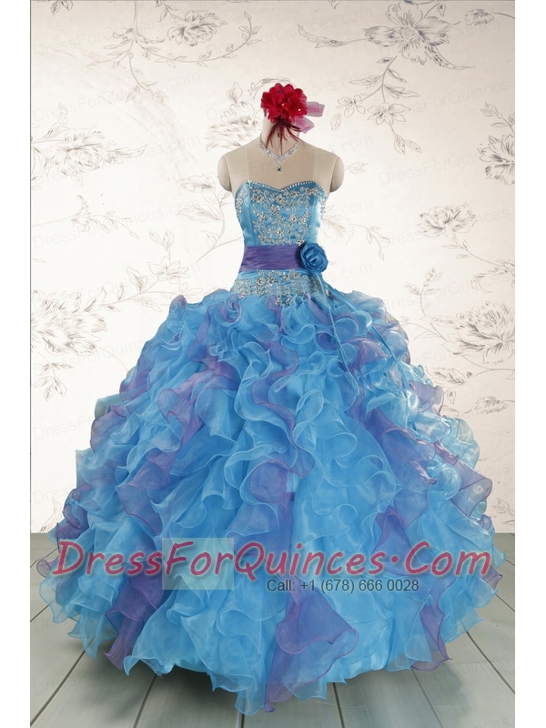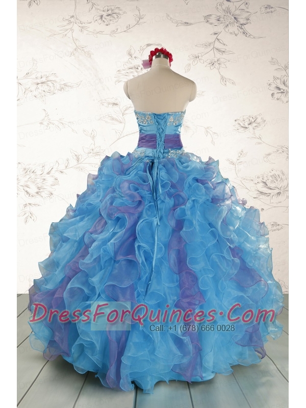 2015 Pretty Strapless Appliques and Ruffles QuinceDress in Multi Color
