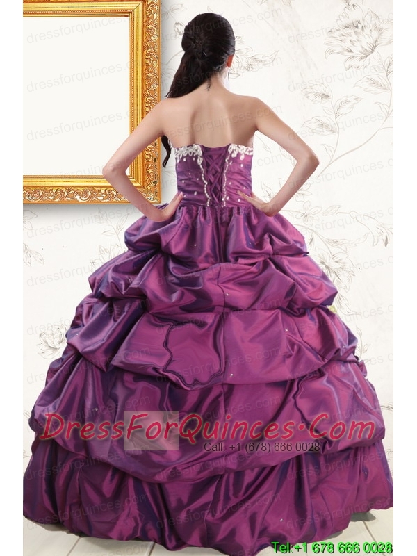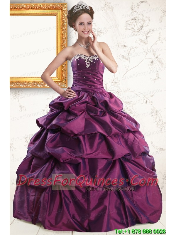 2015 Sweetheart Purple Quinceanera Dresses with Appliques and Pick Up