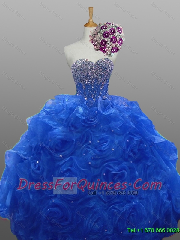 2015 Sweetheart Quinceanera Dresses with Beading and Rolling Flowers