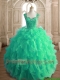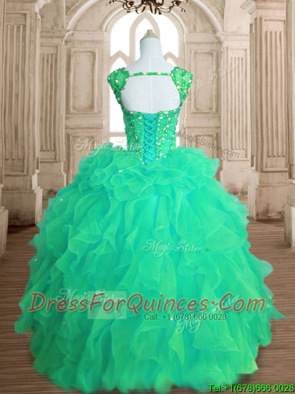 Affordable Beaded and Ruffled Straps Quinceanera Dress in Spring Green