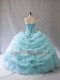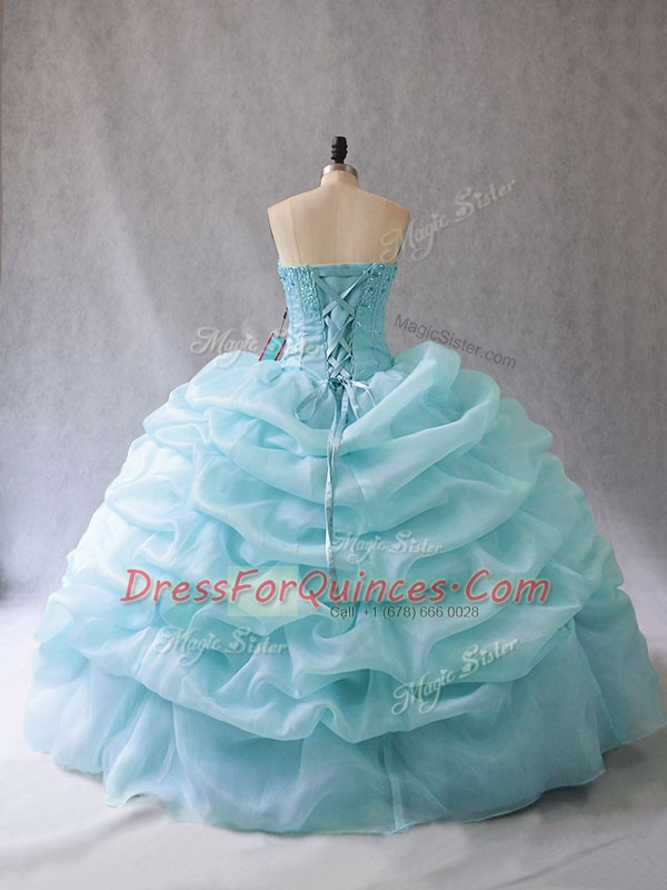 Aqua Blue Sleeveless Beading and Pick Ups Floor Length Quince Ball Gowns