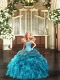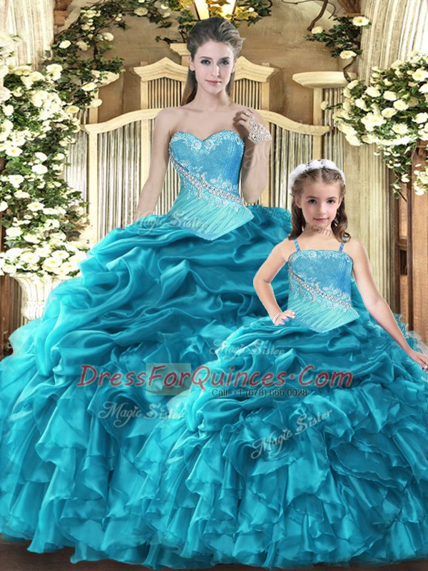 Artistic Teal Ball Gowns Tulle Sweetheart Sleeveless Beading and Ruffles and Ruching and Pick Ups Floor Length Lace Up Quinceanera Dress