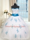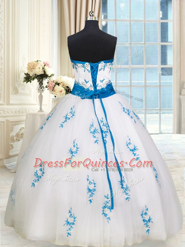 Attractive White Sleeveless Floor Length Embroidery and Belt Lace Up 15 Quinceanera Dress